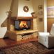 Διακόσμηση με πλαϊνά και ρίχτια από χρυσή πέτρα σφυρήλατη. Ποδιά από μάρμαρο ρεάλε κίτρινο γυαλισμένο και σφυρήλατο. Εταζιέρα από ξύλο μασίφ.