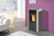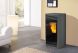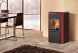 Σόμπα καλοριφέρ pellet σε μοντέρνο σχεδιασμό, με μεγάλη πόρτα και τζάμι. Παράγει ζεστό νερό για την τροφοδοσία όλων των σωμάτων του σπιτιού.