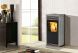 Σόμπα καλοριφέρ pellet με μοντέρνο σχεδιασμό, με μεγάλη πόρτα και τζάμι. Παράγει ζεστό νερό για την τροφοδοσία όλων των σωμάτων του σπιτιού.