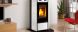 Μοντέρνα ενεργειακή αερόθερμη σόμπα ξύλου από την σειρά Carillon της της La Nordica - Extraflame με δυνατότητα περιστροφής κατά 90° μοίρες. Καμπύλο κεραμικό πυρίμαχο τζάμι. Κεραμική εστία Ironker. Εξωτερική επένδυση με αυθεντικά Ιταλικά χειροποίητα κεραμικά. Σε τρεις εκδόσεις: