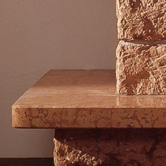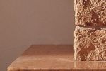 Παραδοσιακή διακόσμηση με πλαϊνά και ρίχτια από κόκκινο μάρμαρο ασίαγκο σφυρήλατο. Ποδιά από κόκκινο μάρμαρο ασιάγκο γυαλισμένο. Εταζέρα από ξύλο