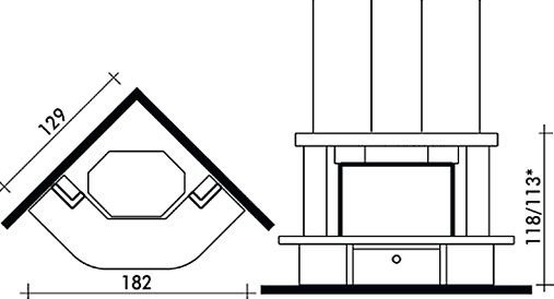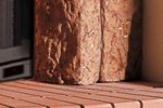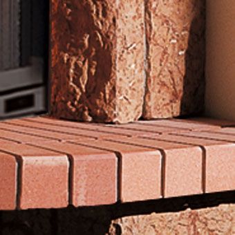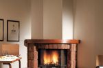 Παραδοσιακή διακόσμηση με πλαϊνά και ρίχτια από κόκκινο μάρμαρο ασίαγκο σφυρήλατο. Ποδιά από κόττο, εταζέρα από ξύλο.
