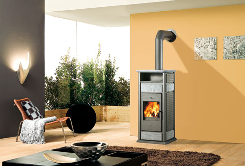 Ρουστίκ σόμπα καλοριφέρ που άνετα προσαρμόζεται και στους πιο μοντέρνους χώρους.