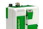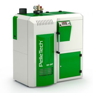 Ολοκληρωμένο σύστημα λέβητα - καυστήρα με ενσωματωμένο δοχείο pellets, χυτοσίδηρο καυστήρα και ΝΕΟ πρωτοποριακό σύστημα περιστροφικού καθαρισμού υπολειμμάτων.