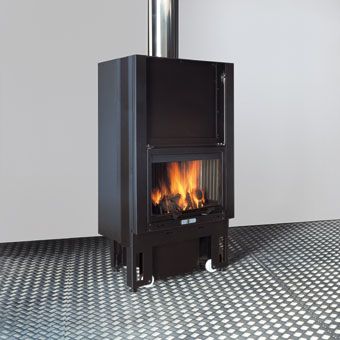 Κλειστή εστία από σκούρο γκρίζο ατσάλι .